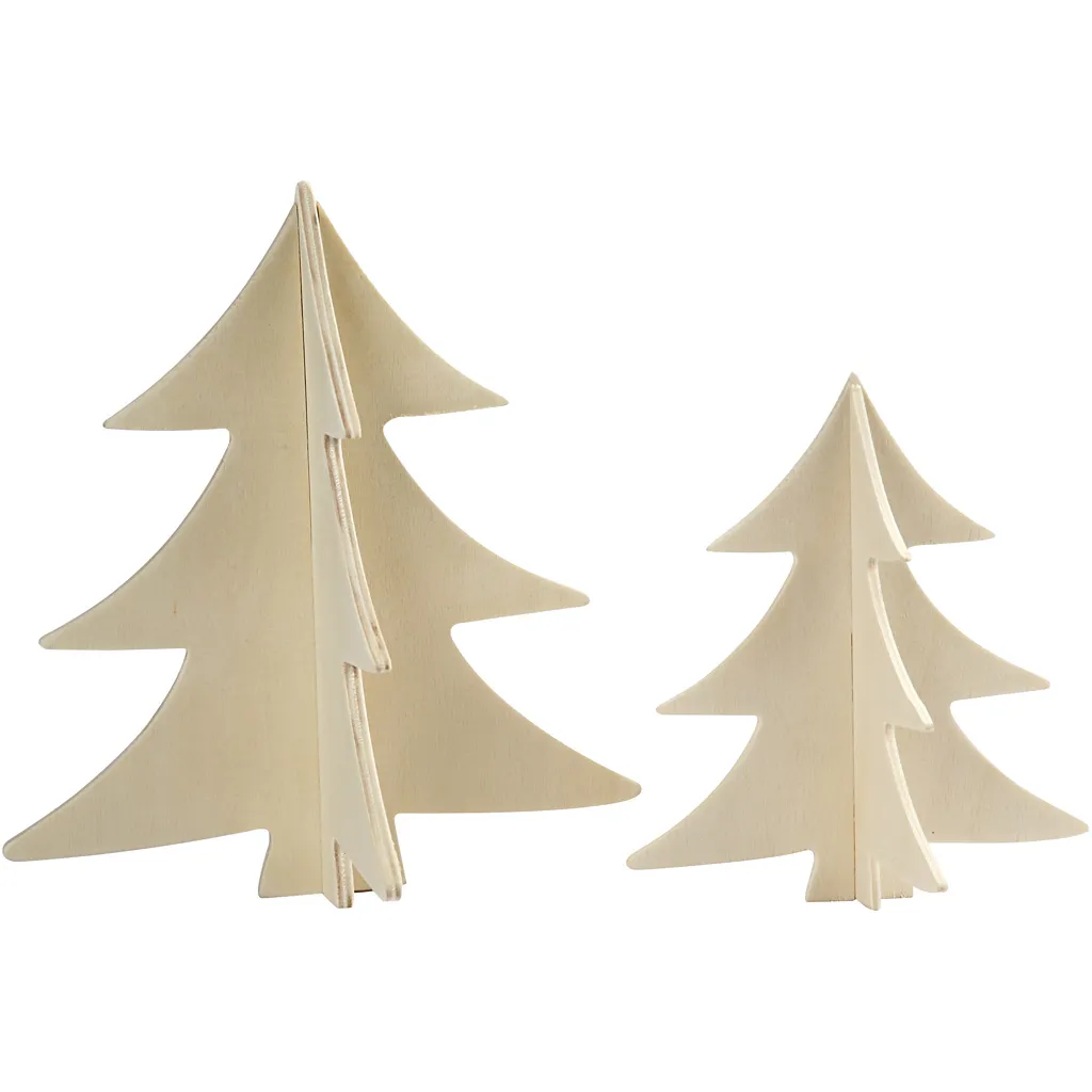 Julgranar i ljust trä, med skåra som underlättar monteringen. Set med 2 stl.