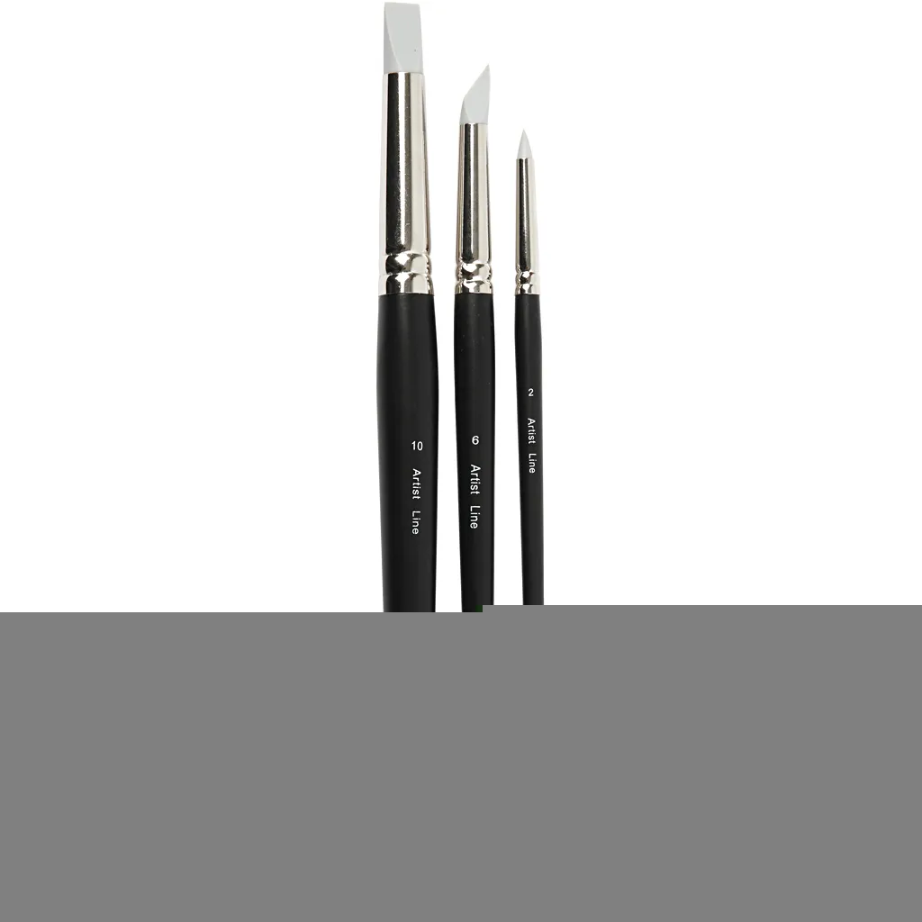 Spetsig pensel gjord av silikon, som kan användas till både färg och lim. Mycket enkel att rengöra Set med 1 rund (2 mm) 1 sned (6 mm) och 1 platt (10 mm)