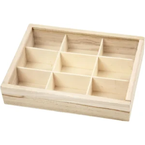 Ask med 9 fack (3,5×5 cm) och skyddslock i glas