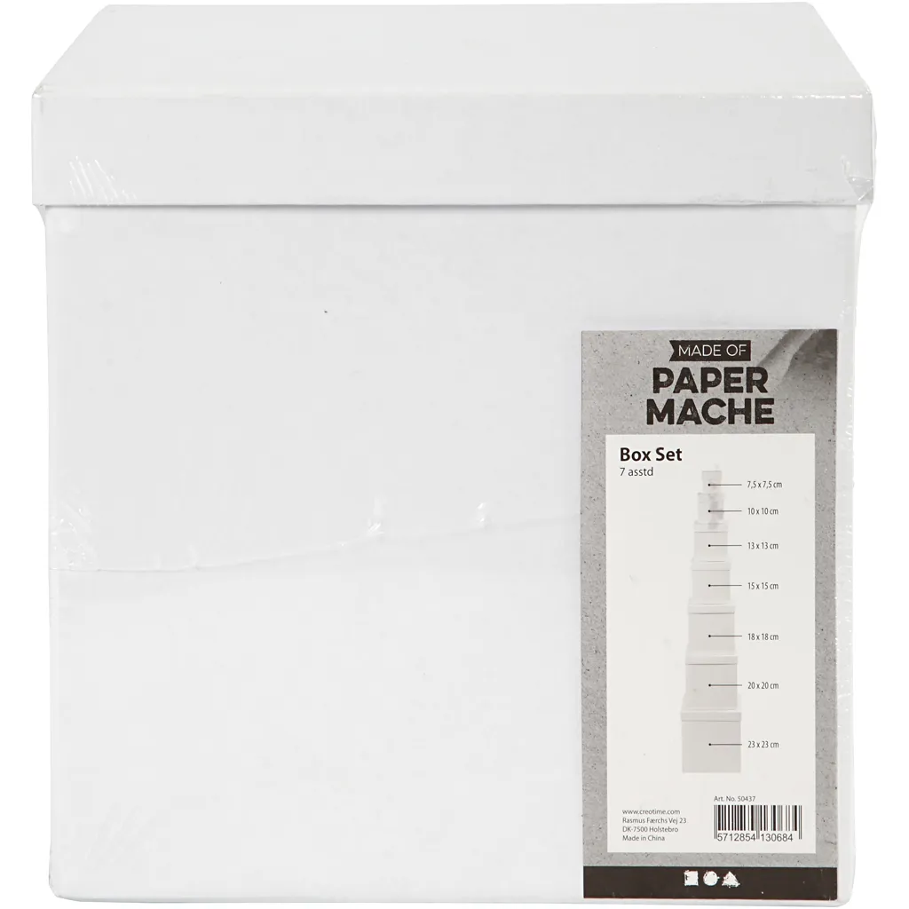 Sortiment av kvadratiska askar av papp med lock Frp. med 7 storlekar