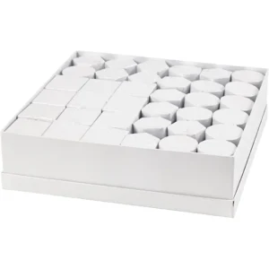 Sortiment av pappaskar i set av 2 storlekar i runda, kvadratiska och sexkantiga designer.