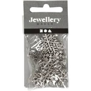 Snöflinga i metall med en ögla. Förpackning med 6 designer à 3 st