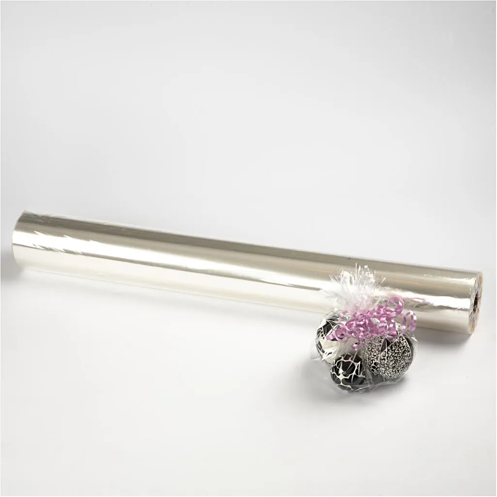Rulle med genomskinlig cellofan som du kan använda när du vill göra presentinslagningen extra speciell och elegant.Presentinslagning är aldrig enkelt, men med cellofan blir det betydligt enklare. Du kan snabbt och enkelt linda cellofanen runt din hemgjorda present för en vacker och exklusiv look – och eftersom cellofan är transparent kan gästerna både se och beundra din noggrant utvalda present. Precis som presentpapper är cellofanen på rulle så att du enkelt kan mäta upp hur mycket du behöver.Efter att du har investerat blod, svett och tårar för att hitta den perfekta presenten så hamnar den ofta i högen med presenter på presentbordet. Men om du väljer att slå in presenten i cellofan blir den nästan ett konstverk i sig. Din present blir en festlig touch bland de andra presenterna som bara är inslagna i vanligt presentpapper. Om du inte kan få nog av vackra omslagsalternativ har vi också cellofanpåsar, färgad cellofan i ark och massor av omslagspapper