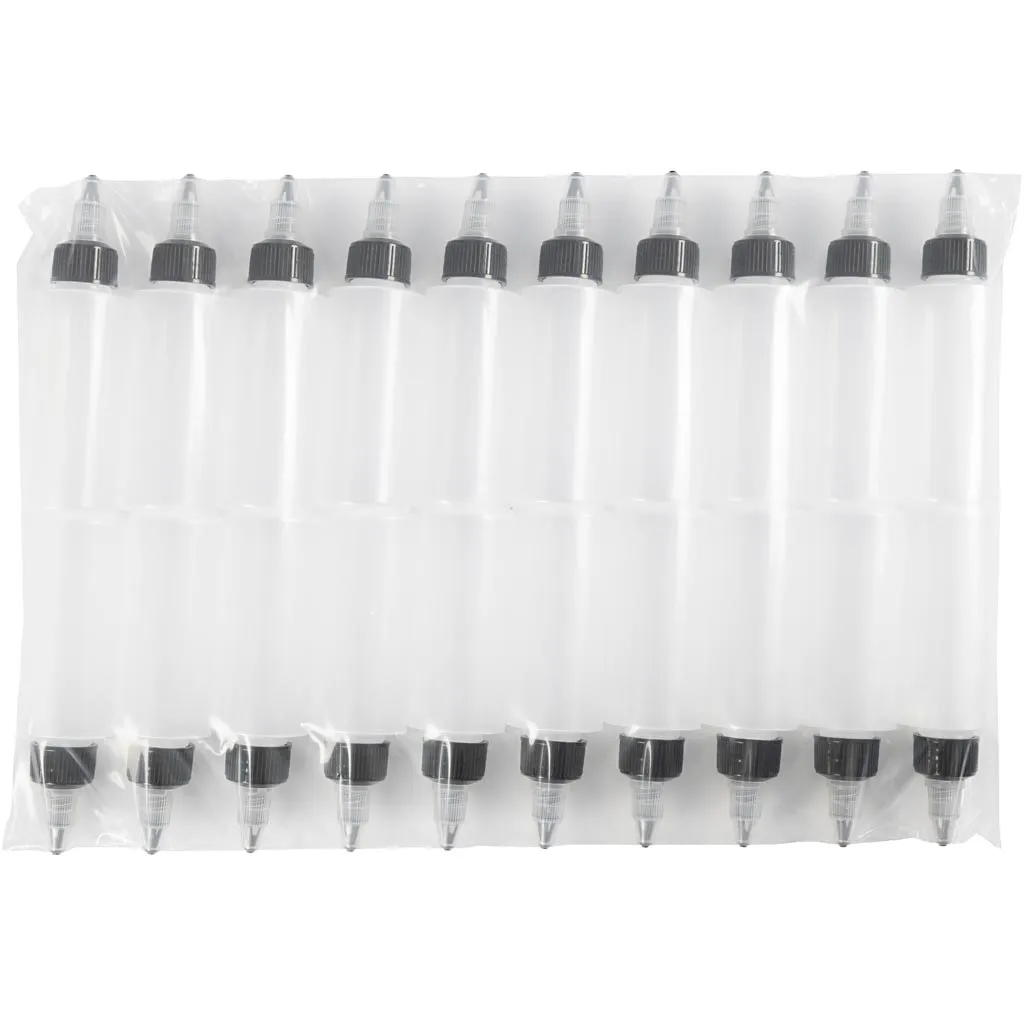 Påfyllningsflaskor i mjuk plast med skruvlock och skruvbar doseringsspets