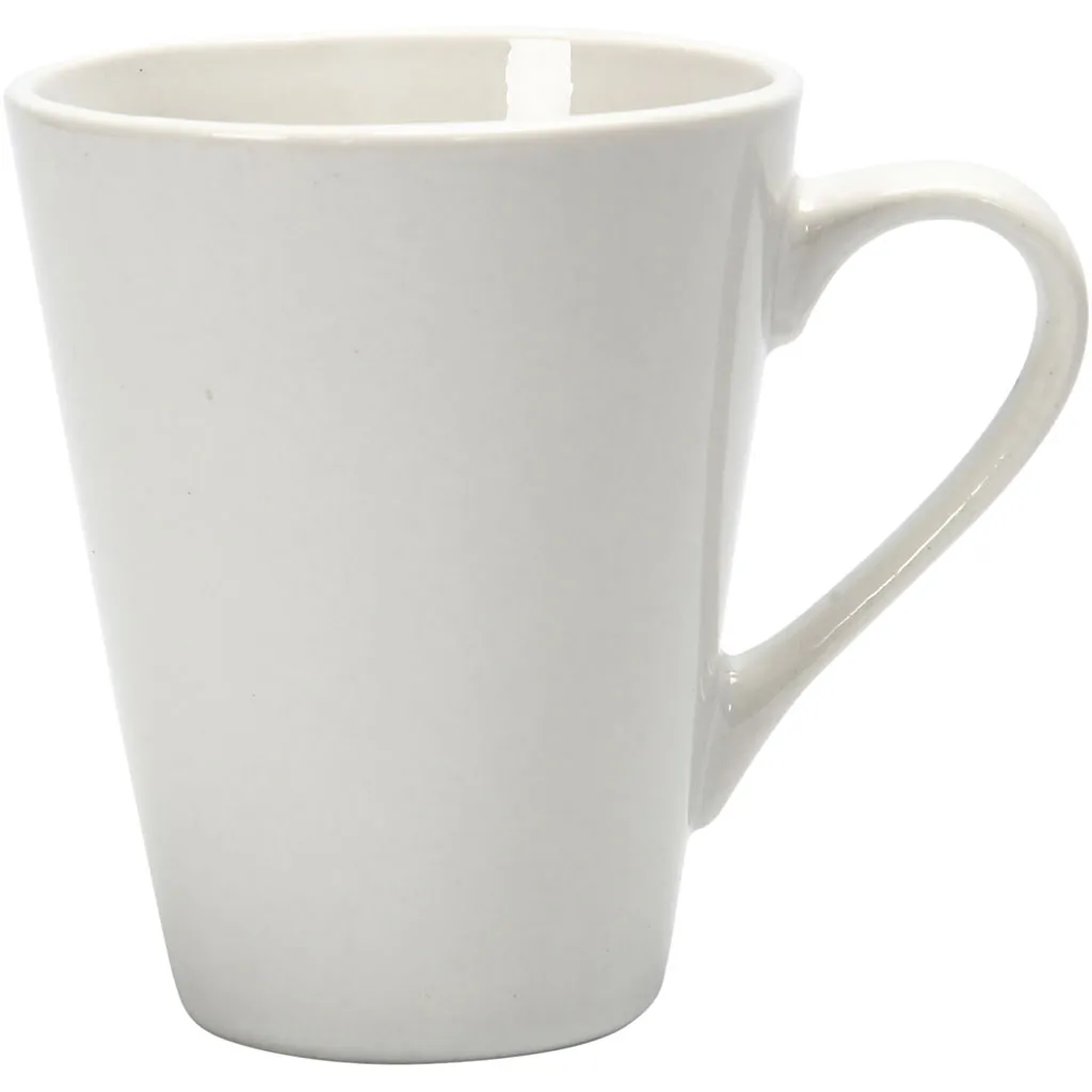 Porslinsmugg med handtag som du kan dekorera och göra personlig.Muggen rymmer både varma och kalla drycker och det rejäla handtaget ger ett bra och stabilt grepp. Om du vill dekorera muggen ska du se till att ytan är helt ren, fettfri och torr. Om du väljer att måla din mugg bör du använda en färg som tål de varma temperaturerna i diskmaskinen – på så sätt blir din mugg till glädje under lång tid framöver. Glöm inte att följa anvisningarna på färgen gällande härdning i ugn.Njut av en rolig kreativ eftermiddag genom att måla egna personliga muggar. Barnen kan dekorera muggen med bilar, hjärtan eller en bild på sina föräldrar. Även de allra minsta kan hjälpa till att täcka muggen med massor av klotter och krumelurer – det är ett superroligt projekt som tränar både finmotoriken och kreativiteten. Den färdiga muggen är perfekt till varm choklad en kall vinterdag eller till kalla saft i sommarvärmen