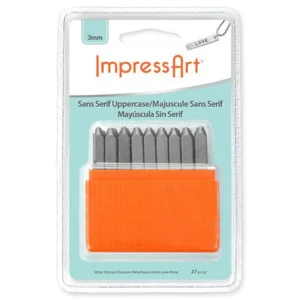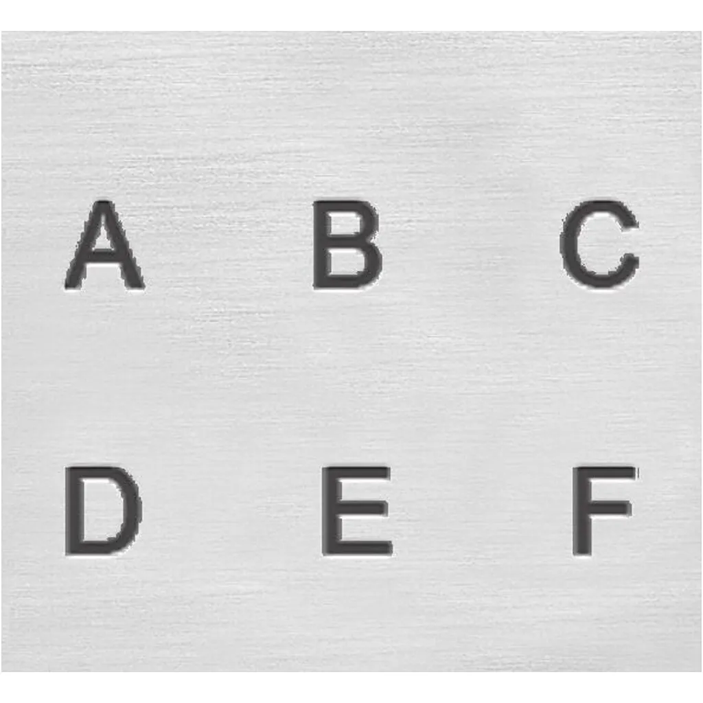Praktisk förvaringsbox med präglingsstämplar av massivt stål. Består av stora bokstäver/versaler (a-z) och 1 tecken