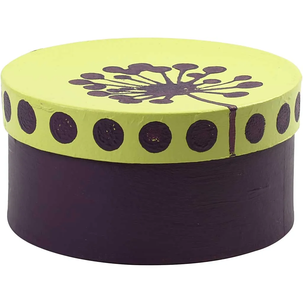 Runda, handgjorda askar i papier-maché. Set med 3 st