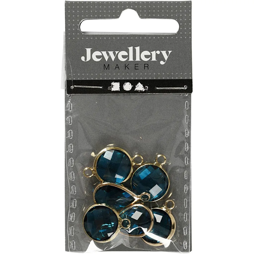 Smyckberlock med transparent facetterade cabochoner av glas och metallinfattning med ögla