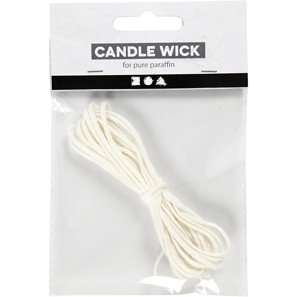Platt bomullsveke som lämpar sig utmärkt för hemgjorda ljus. Lätt att kapa till önskad längd. Lämplig för paraffinblandning på 80 % paraffin och 20 % stearin, sojavax Fler varianter