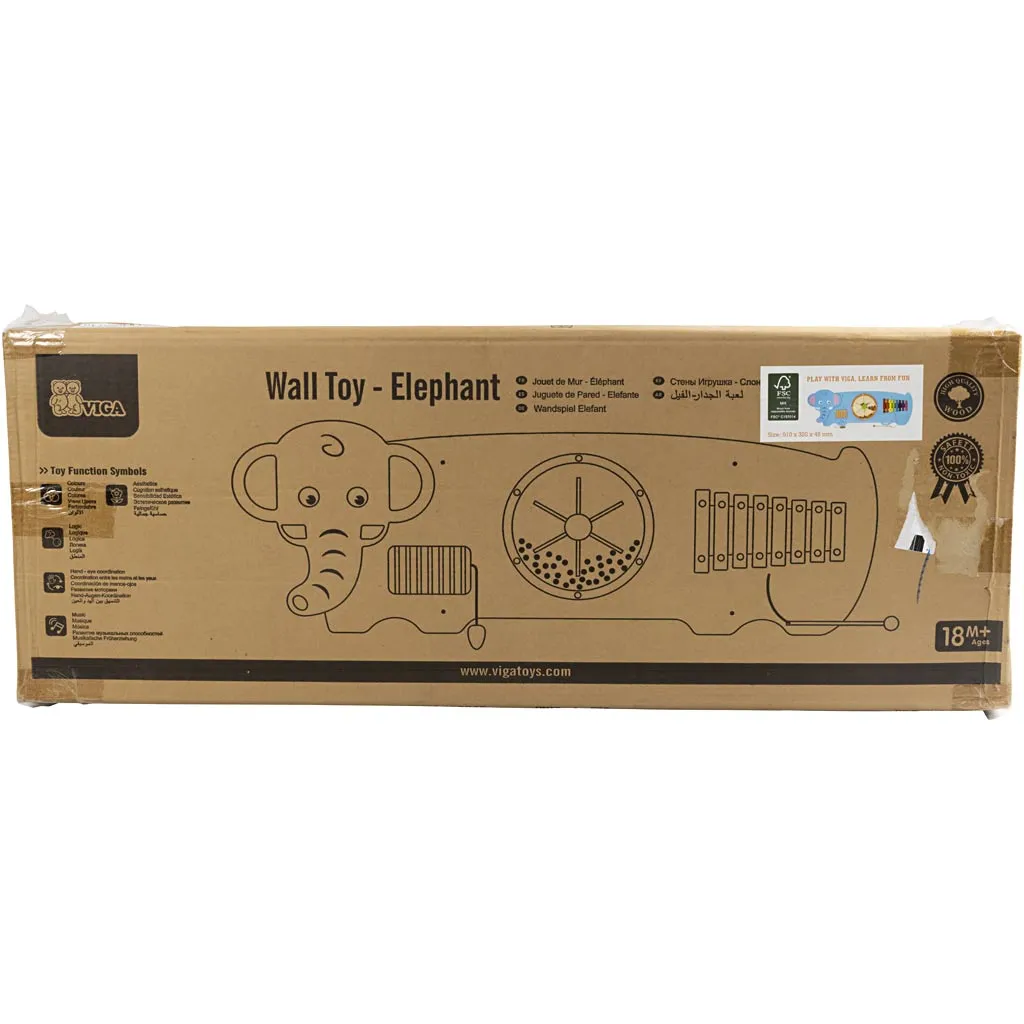 Stor VIGA aktivitetstavla formad som en elefant att hänga på väggen. Elefanten har många skojiga musikaliska detaljer, som xylofon, ljudkort och musikhjul med pärlor. Stärker barnets koncentration och motoriska färdigheter