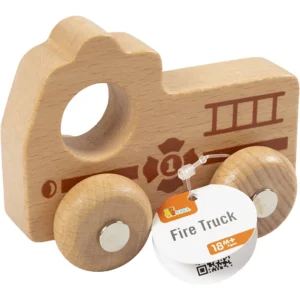 Enkel och batterifri brandbil som stimulerar fantasin.Brandbilen i trä har fyra hjul som roterar och fina detaljer på sidan. Den är redo att släcka många bränder – oavsett om leken äger rum på golvet, bordet eller bron. Bilen behöver inga batterier utan drivs endast av barns fantasi och kreativitet